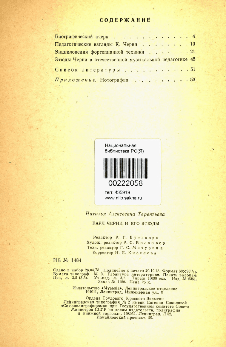Карл Черни и его этюды / Н. Терентьева. - Ленинград : Музыка. Ленинградское отделение, 1978. - 56 с. : нот. ил. - (В помощь педагогу-музыканту).
