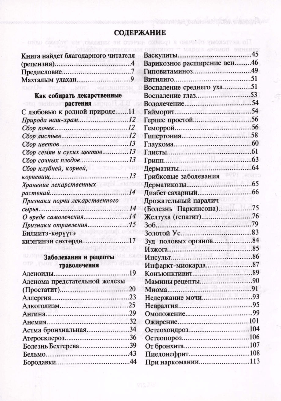 Исцеление. Рецепты лекарственных растений / [составитель В. С. Львова ; редактор А. К. Посельская]. - Ытык-Кюель : Редакция газеты "Таатта", 2014. - 219, [2] с.