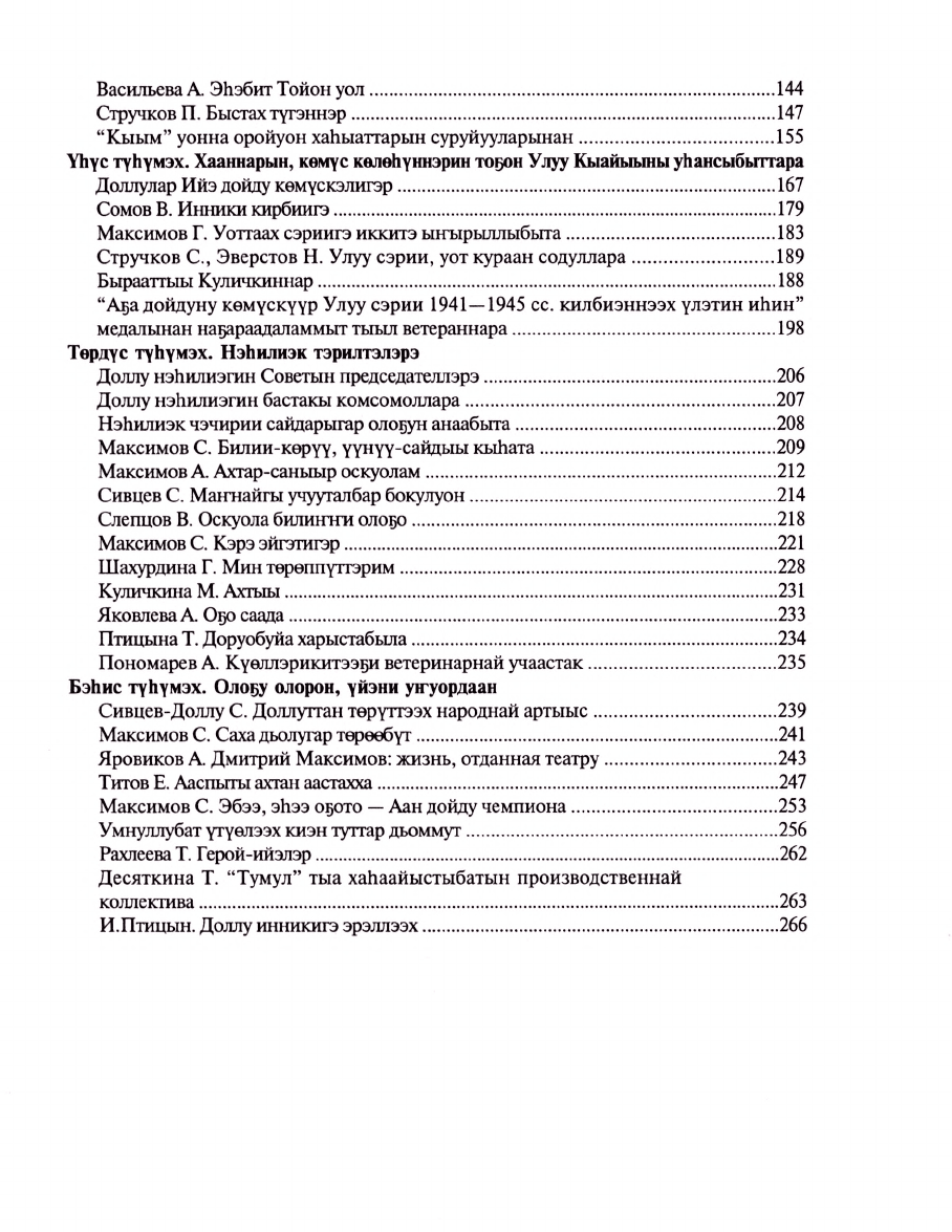 В книгу вошли архивные материалы, старинные предания и легенды, воспоминания старожилов об истории Доллунского наслега, также жизнь наслега в условиях рыночных отношений, в период перехода в местное самоуправление.