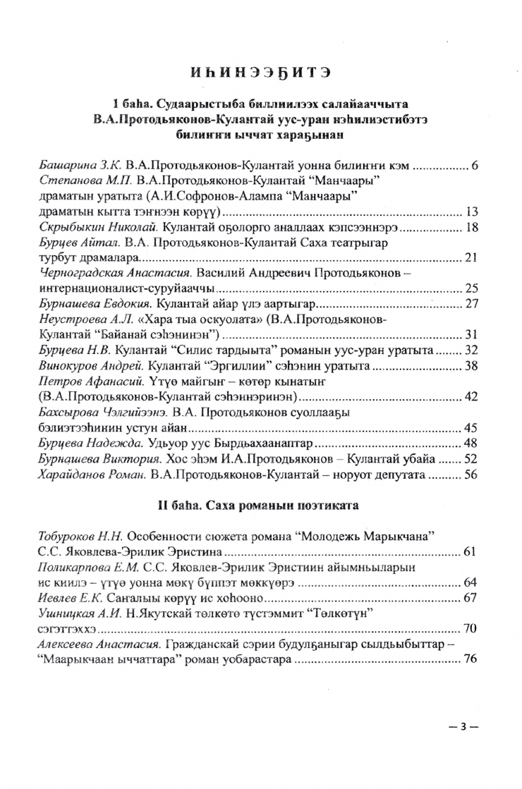 В сборнике даны материалы республиканской научно-практической конференции, посвященной к 100-летию писателя, государственного деятеля В. А. Протодьяконова-Кулантая и 70-летию романа С. С. Яковлева-Эрилик Эристина "Марыкчанские ребята". Также вошли лучшие статьи студентов, участвовавших в студенческой конференции