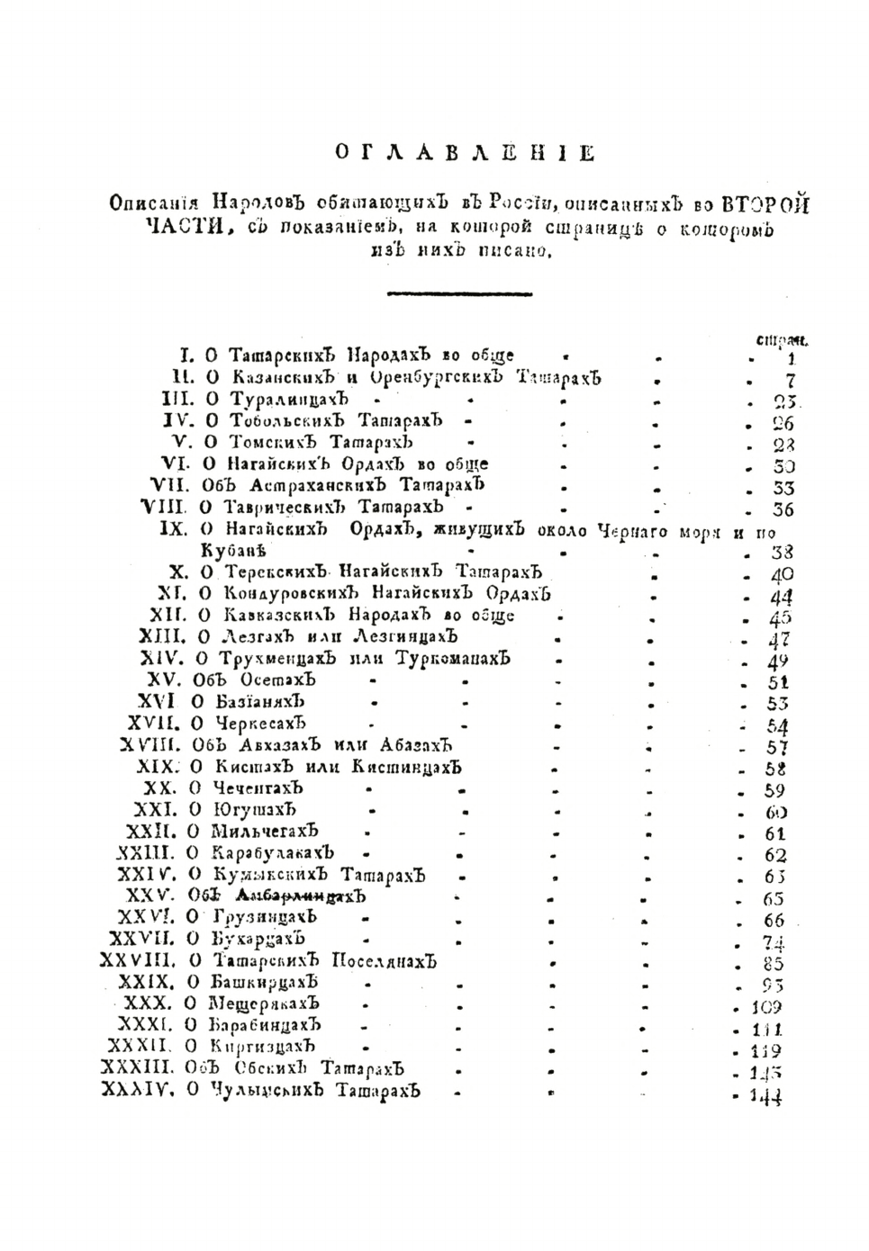 - 1. Георги Иоганн Готлиб. Описание всех обитающих в Российском государстве народов: их житейских обрядов, обыкновений, одежд, жилищ, упражнений, забав, вероисповеданий и других достопамятностей: в 4 частях