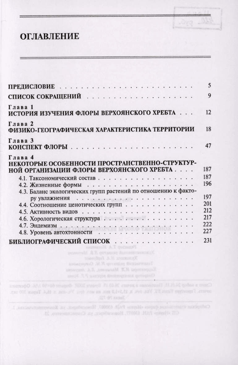 Конспект флоры Верхоянского хребта = The abstract of flora of the Verkhoyansk ridge