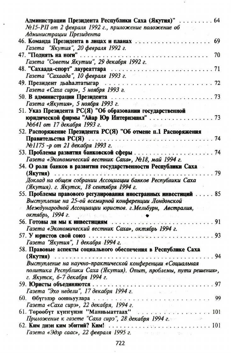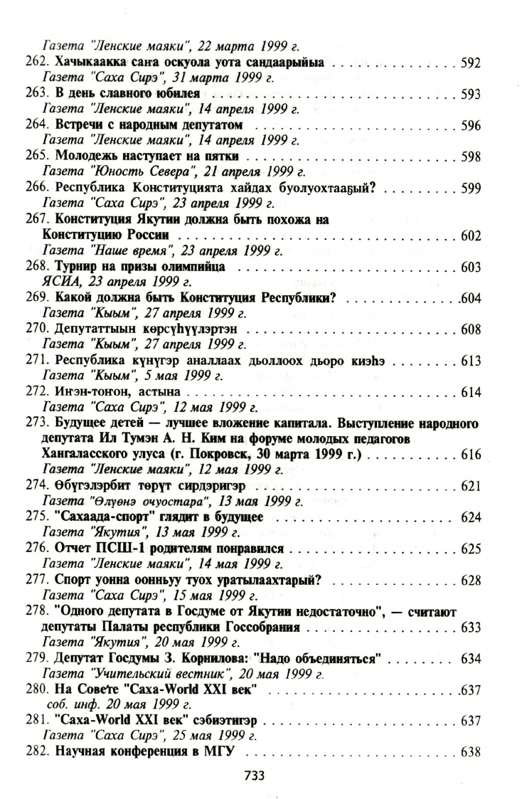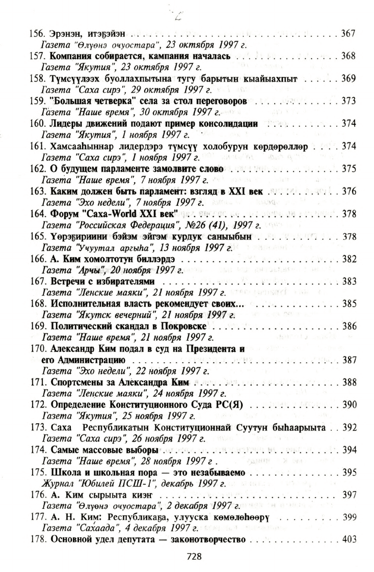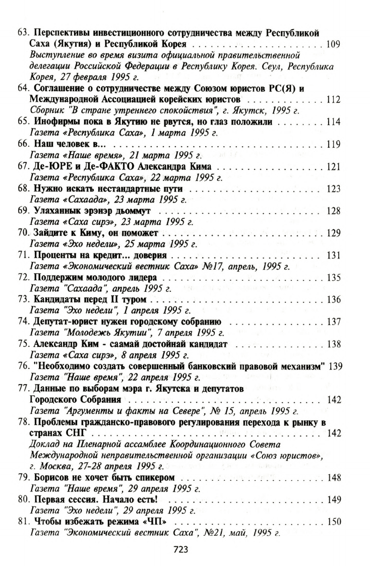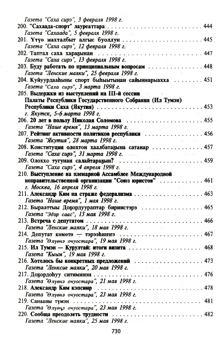 Сборник докладов, выступлений и публикаций талантливого организатора, ученого и общественного деятеля А. Н. Ким-Кимэна и ряда статей, рассказывающих о его трудовой и общественно-политической деятельности за период с 1981-1999 гг. А. Н. Ким - народный депутат Палаты Республики Государственного Собрания (Ил Тумэн) РС (Я), депутат Городского Собрания депутатов г. Якутска, председатель Постоянной комиссии по законодательству, кадровой политике и связям с общественностью, президент юридической фирмы "Айар Юр Интернешнл"