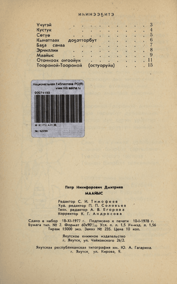 Саха сиринээҕи кинигэ издательствота, 1978. -