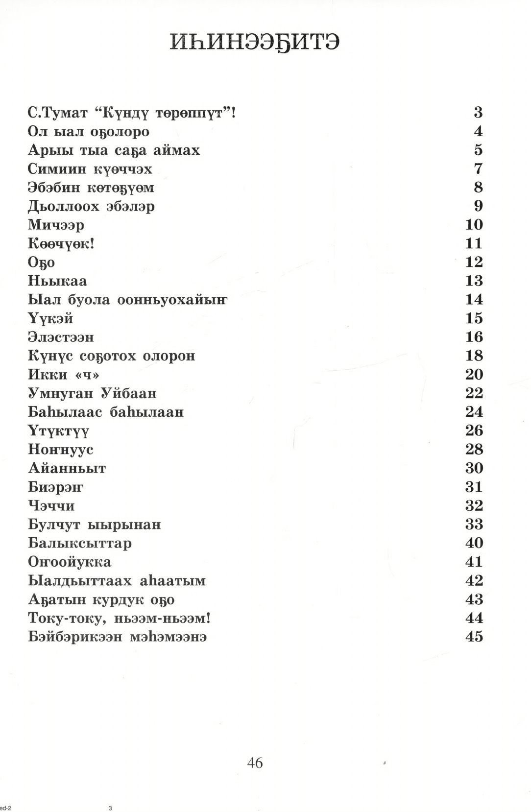 Ийэм күөччэҕэ : [оҕолорго анаан хоһооннор / Константин Туйаарыскай ; хомуйан оҥордулар: В. Н. Павлова, Г. И. Захарова, С. Е. Макарова ; С. Тумат киирии тыла ; художник С. В. Иванова]. - Дьокуускай : Типография Департамента начального и среднего профессионального образования Министерства образования РС(Я), 2000. - 46 с.
