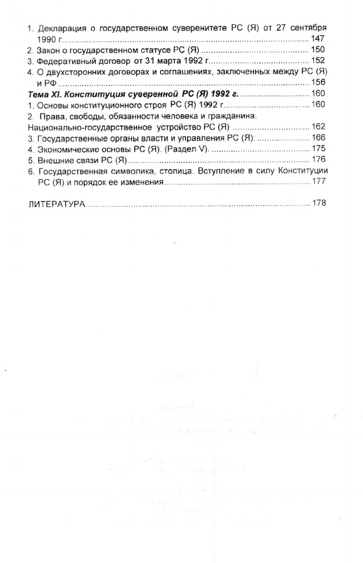 В учебном пособии изложены правовые основы ясачного подданства и правовое положение народов Якутии в составе Российского самодержавного государства и образование Якутской АССР, затем суверенной Республики Саха (Якутия). Изучение темы способствует расширению юридических знаний по истории права и Российского федеративного государства