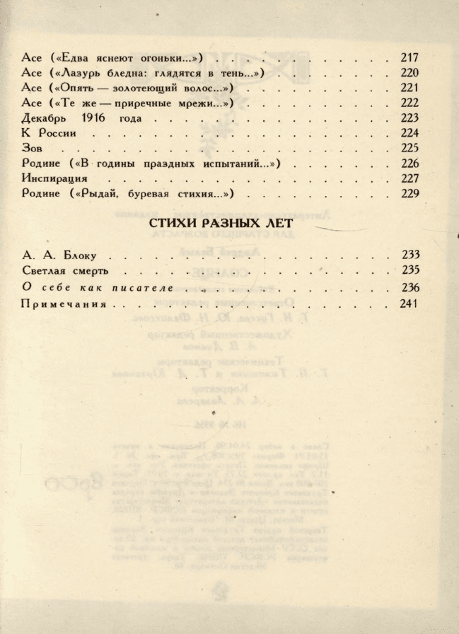В настоящее издание вошли стихотворения из книг «Золото в лазури», «Пепел», «Урна», «Звезд а», стихи разных лет, статья «О себе как писателе».