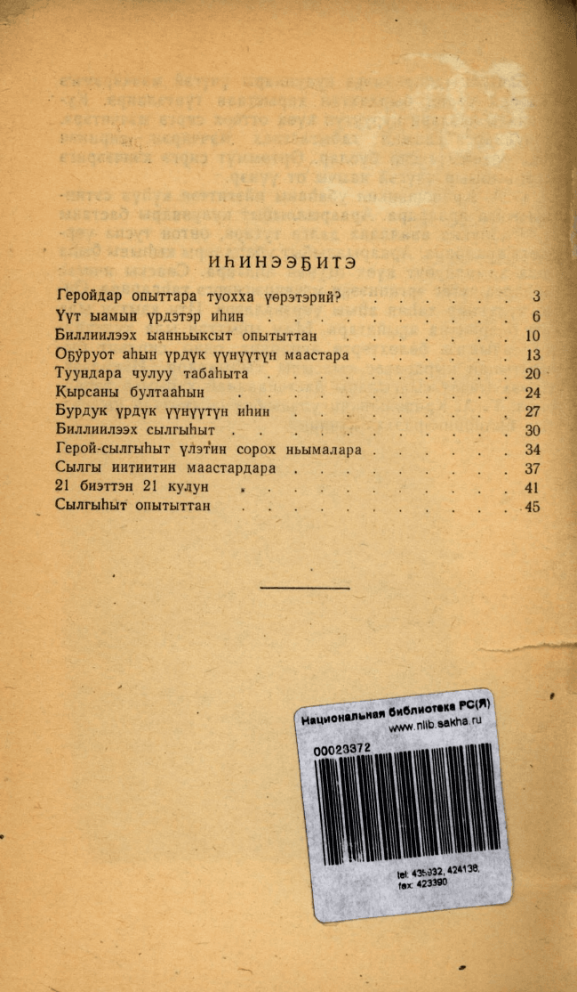 Үлэ - чиэс, албан аат : Социалистическай Үлэ Геройдарын үлэлэрин опытыттан / [сост. В. Л. Алексеев ; ред. Н. Ф. Васильев]. - Якутскай : Саха сиринээҕи кинигэ издательствота, 1965. - 46, [2] с.