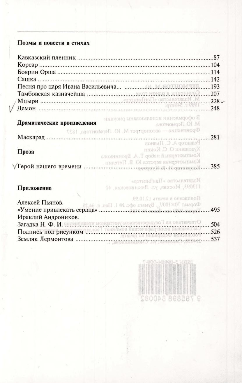 Стихотворения. Поэмы и повести в стихах. Драматические произведения. Проза / Михаил Лермонтов ; [автор предисловия И. Андроников]. - Москва : ПанЪинтер, 1999. - 544, [4] с.