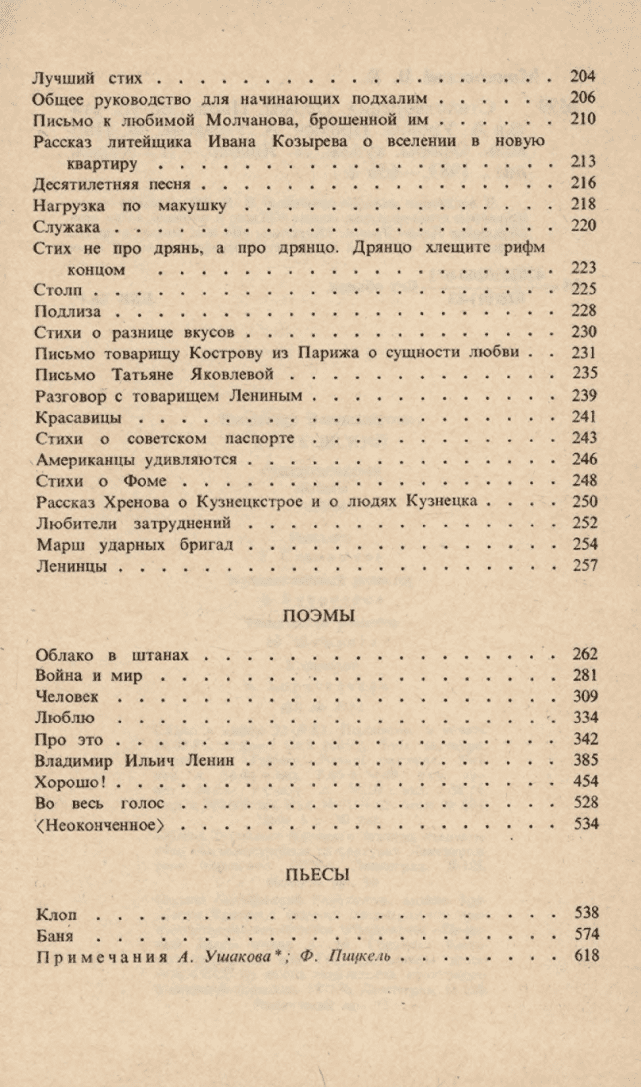 пьесы «Клоп». «Баня», а также автобиография поэта «Я сам».