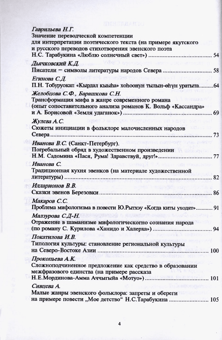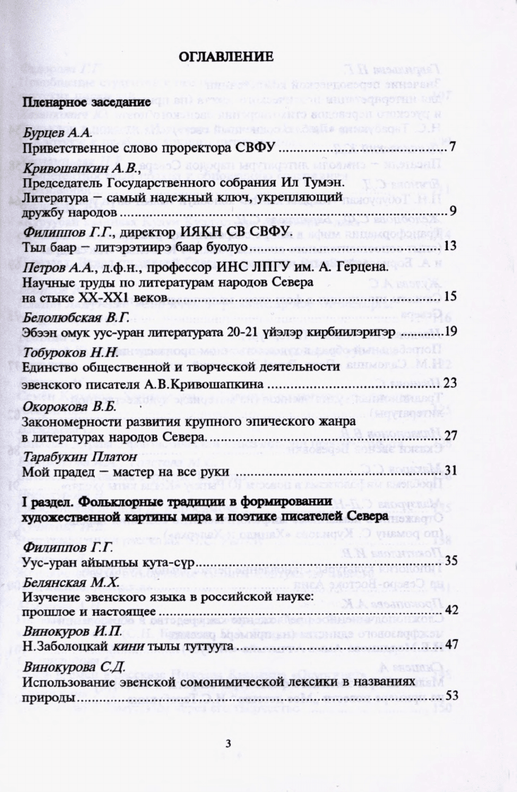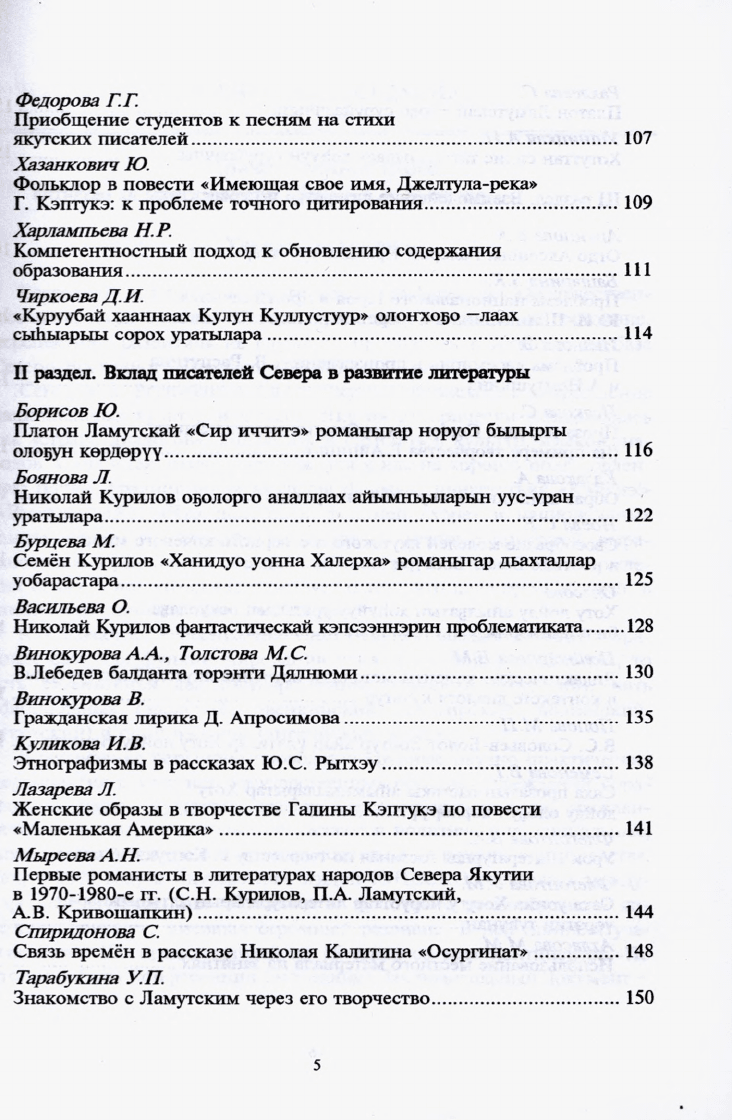 Художественная литература народов Севера: традиции, современное состояние и перспективы развития : материалы Всероссийской научно-практической конференции : к 100-летию Н. С. Тарабукина, 90-летию П. А. Степанова-Ламутского, 75-летию С. Н. Курилова, (25 февраля 2011 г.) / [редколлегия: Белолюбская В. Г., кандидат филологических наук, доцент, Окорокова В. Б., доктор филологических наук, профессор ; составители: Попова М. П., кандидат филологических наук, доцент, Винокурова С. Д., Степанова В. Е.]. - Якутск : ИПК СВФУ, 2011. - 206 с.