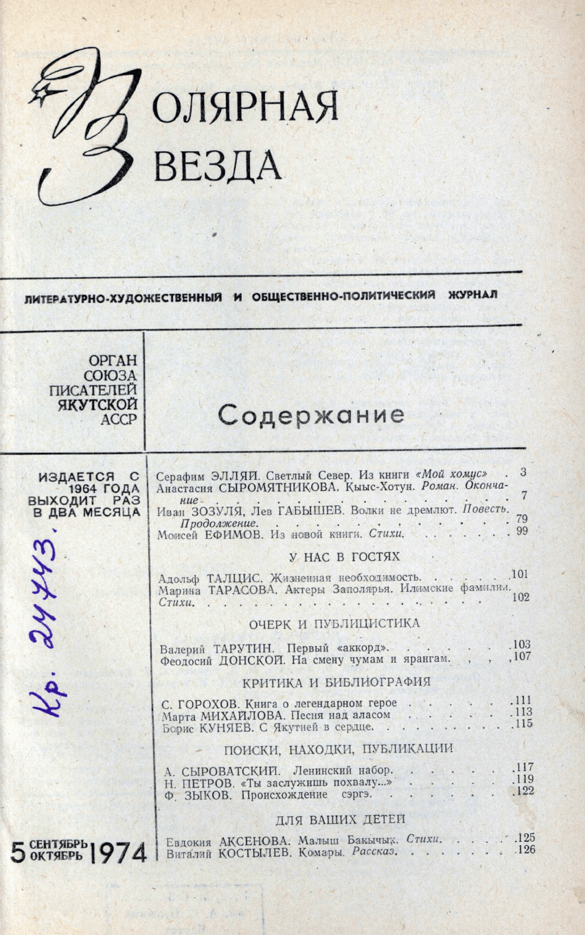 Полярная звезда : литературно-художественный и общественно-политический журнал. - Якутск : [б. и.], 1956-.