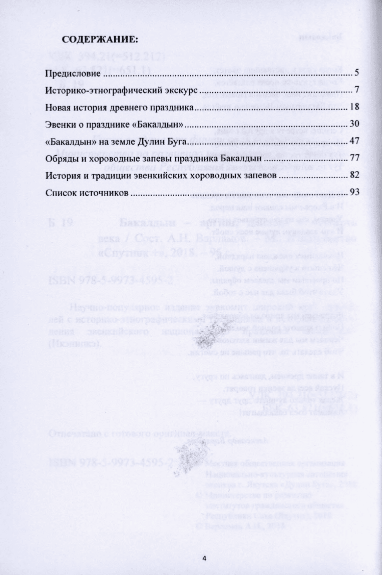 Научно-популярное издание знакомит широкий круг читателей с историко-этнографическими традициями и историей возрождения эвенкийского национального праздника "Бакалдын" (Икэнипкэ)