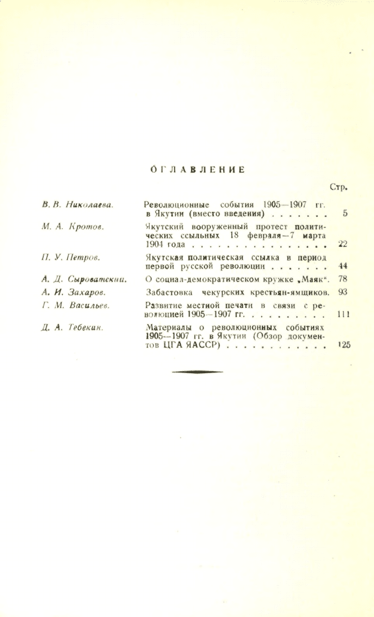 Революционные события 1905-1907 гг. в Якутии = Саха сиригэр 1905-1907 сс. буолбут революционнай событиелар : сборник статей / Академия наук СССР, Якутский филиал, Институт языка, литературы и истории ; [редакторы: П. П. Неустроев, П. У. Петров, Д. Д. Петров]. - Якутск : Книжное издательство, 1956. - 132, [2] с.