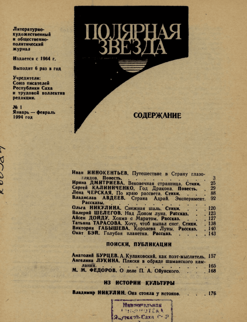 Полярная звезда : литературно-художественный и общественно-политический журнал / . - Якутск : [б. и.], 1956-.