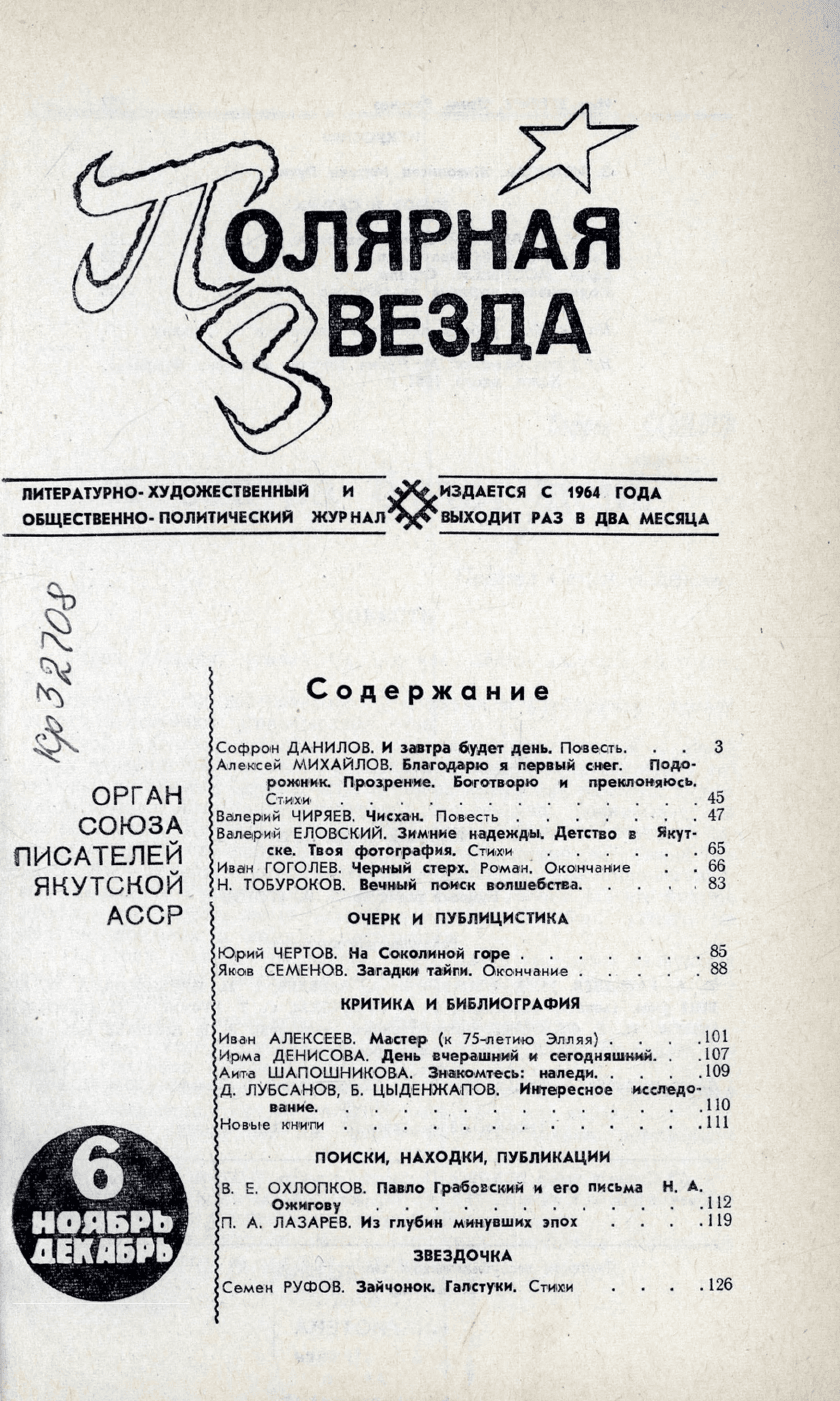 Полярная звезда : литературно-художественный и общественно-политический журнал / . - Якутск : [б. и.], 1956-.