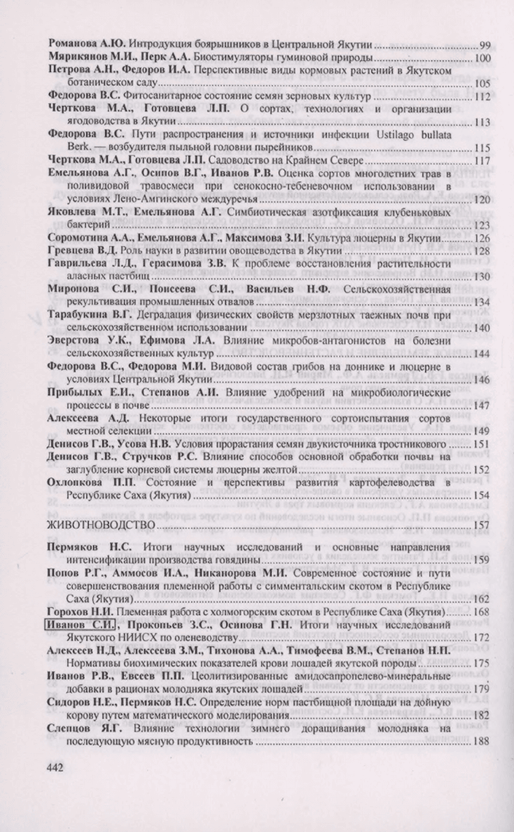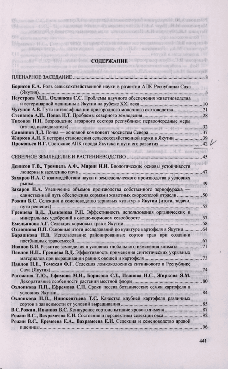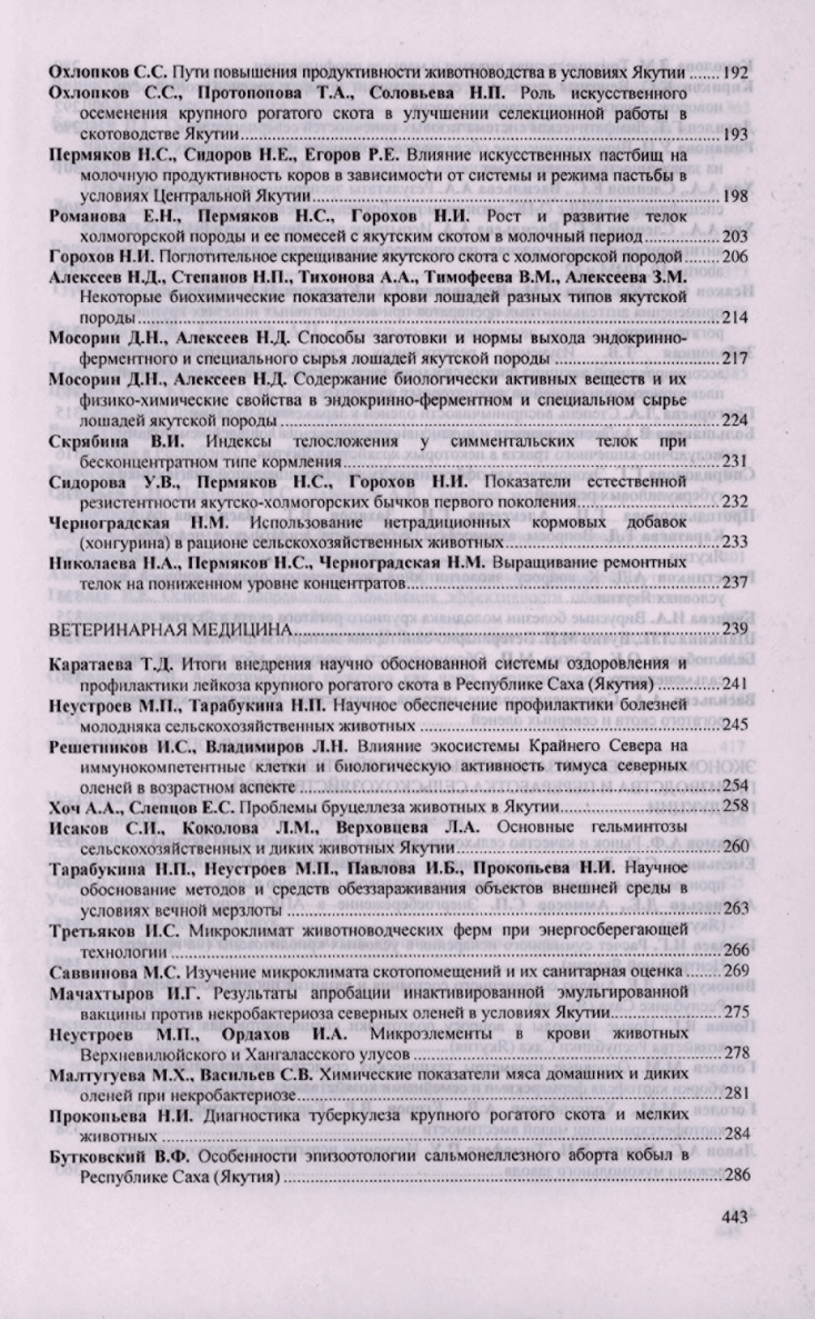 Становление и зрелость сельскохозяйственной науки Якутии и пути ее развития в условиях рынка : сборник материалов научно-практической конференции, посвященной 60-летию организации в Якутии государственной селекционной и республиканской животноводческой опытных станций (Якутск, 2 ноября 1999 г.) / редакционная коллегия: Е. А. Борисов, А. И. Степанов, М. П. Неустроев [и др.] ; ответственные за выпуск: В. С. Винокуров, С. П. Аммосов. – Новосибирск : [б. и.], 2000. – 445 с.
