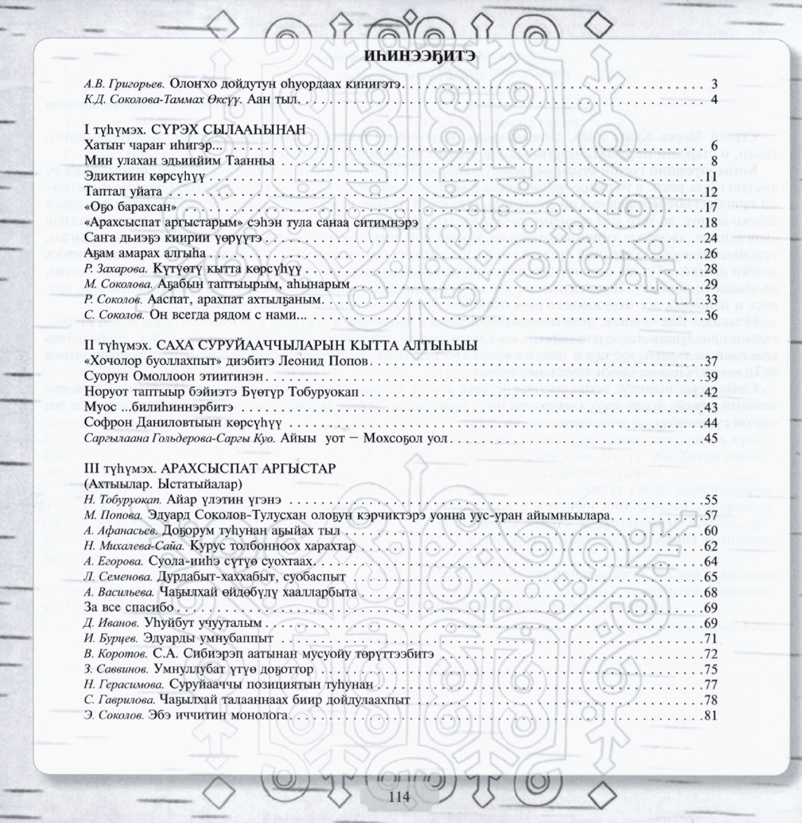 Книга посвящена творчеству Э. Д. Соколова-Тулусхана, члена Союза писателей Якутии