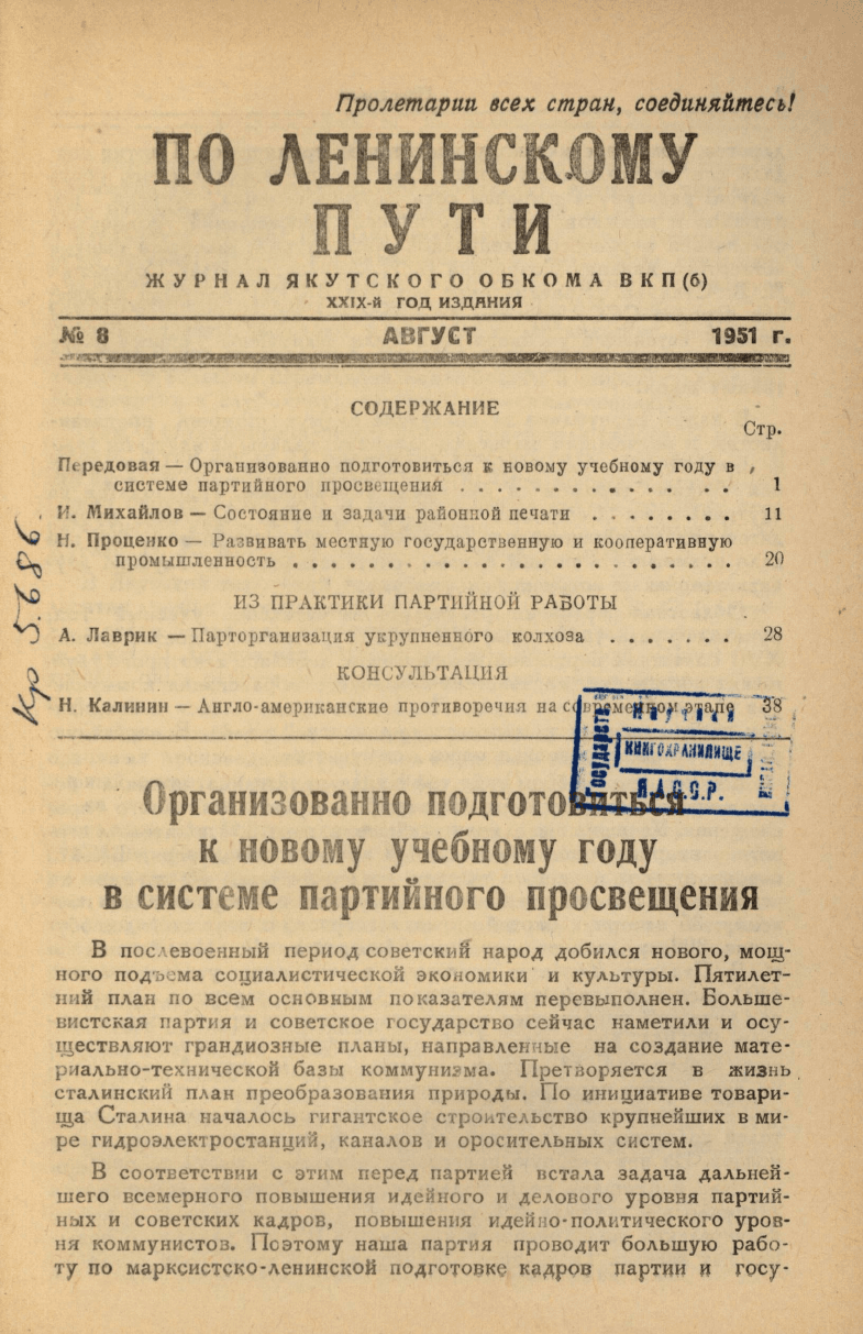 По Ленинскому пути : журнал Обкома ВКП(б) / . - Якутск : , 1922-1964.