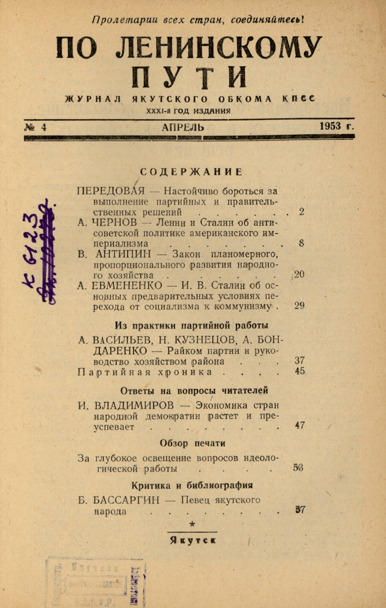 По Ленинскому пути : журнал Обкома ВКП(б) / . - Якутск : , 1922-1964.