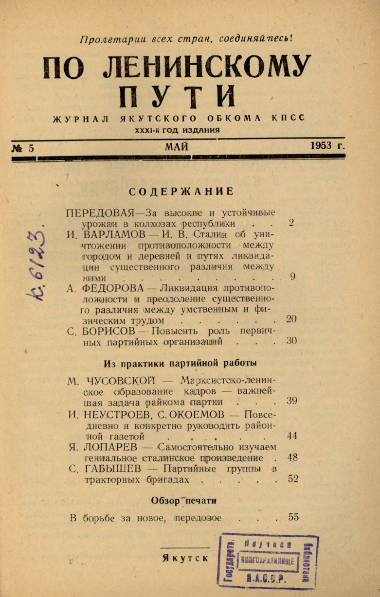 По Ленинскому пути : журнал Обкома ВКП(б) / . - Якутск : , 1922-1964.