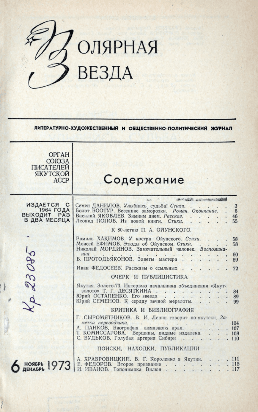- Периодические издания Якутии (конец XIX – XXI вв.) > Журналы > Полярная звезда > 1973,
