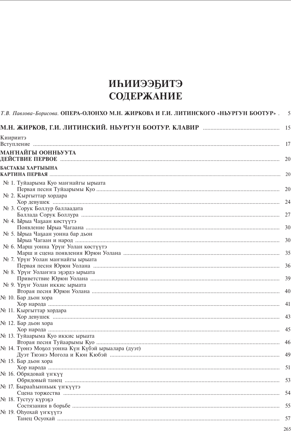 Собрание сочинений : в 10 томах / М. Н. Жирков ; [редколлегия: В. И. Тихонов, С. Н. Винокуров, В. Ф. Тихонова и др. ; научный руководитель, ответственный редактор Т. В. Павлова-Борисова, кандидат искусствоведения ; музыкальный редактор К. А. Герасимов] ; Министерство культуры и духовного развития Республики Саха (Якутия), Национальная библиотека Республики Саха (Якутия), Администрация муниципального района "Вилюйский улус (район)". - Якутск : Алаас, 2017-. - 29 см. Т. 2: Ньургун Боотур : опера в 4 действиях, 6 картинах : клавир / М. Н. Жирков, Г. И. Литинский ; либретто Суорун Омоллоона по мотивам якутского эпоса-олонхо ; русский текст М. Лаписовой ; в редакции: К. А. Герасимова, Т. В. Павловой-Борисовой ; составители: Т. В. Павлова-Борисова, В. Н. Павлова ; редакционная коллегия: Ю. С. Куприянов, С. Н. Винокуров, С. В. Максимова [и др.] ; музыкальная редакция К. А. Герасимов, Т. В. Павлова-Борисова ; редакция якутского текста либретто: В. Н. Павлова, Т. В. Павлова-Борисова ; редакция русского текста либретто Т. В. Павлова-Борисова ; ответственный за выпуск А. А. Дашевская ; автор вступительной статьи Т. В. Павлова-Борисова. - Новосибирск : Наука, 2020. - 266, [2] с.