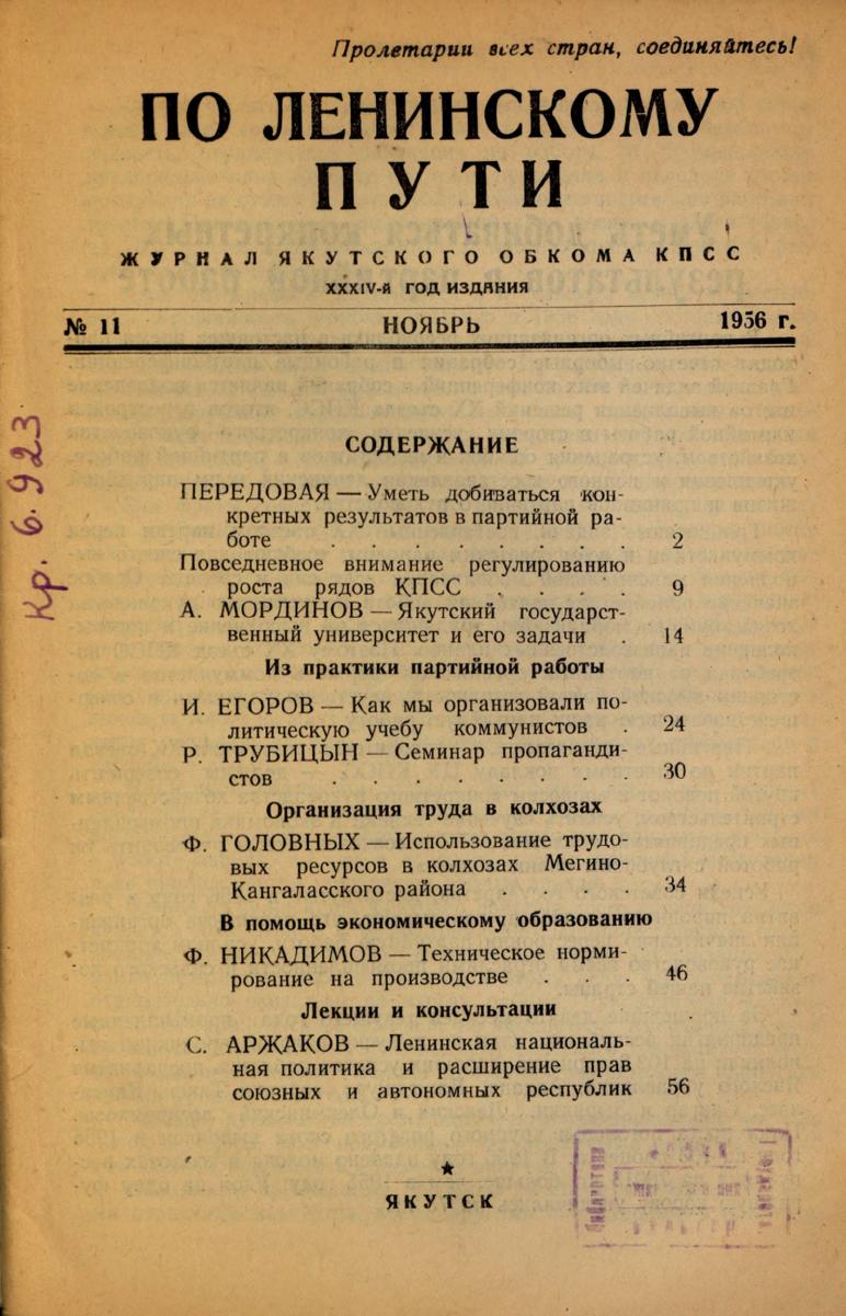 По Ленинскому пути : журнал Обкома ВКП(б). - Якутск, 1922-1964. - 22 см.