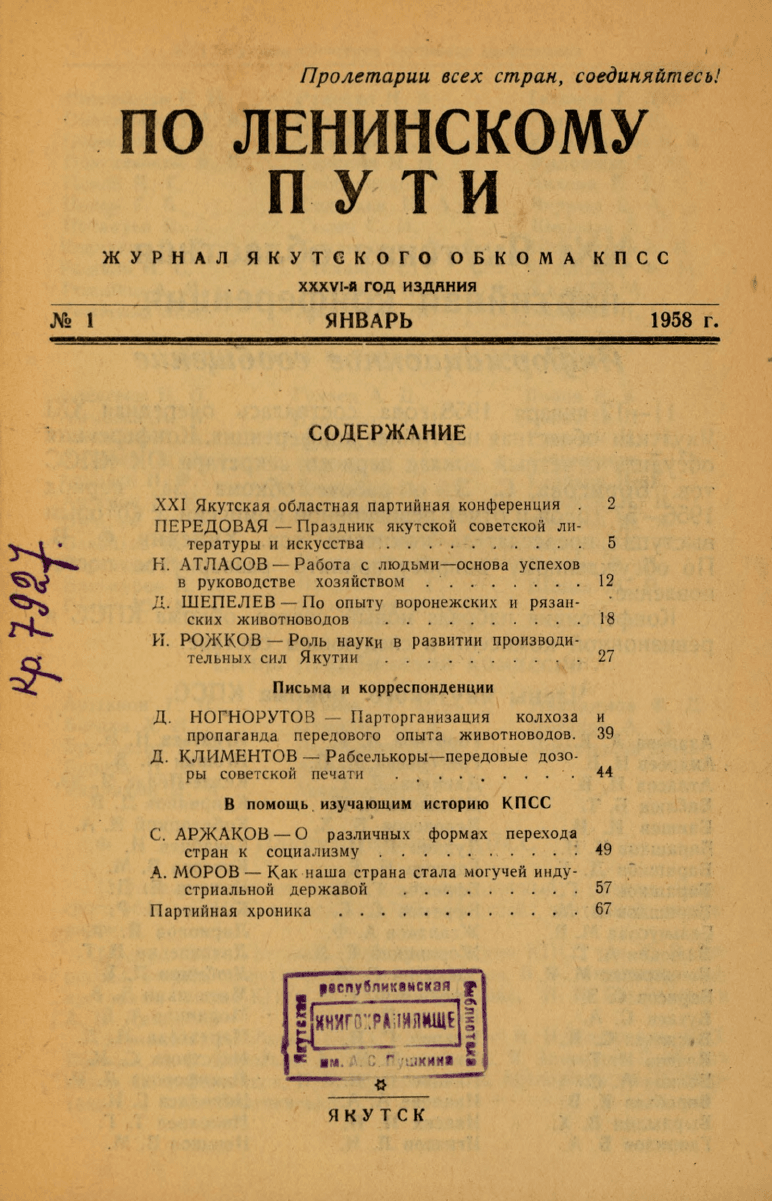 По Ленинскому пути : журнал Обкома ВКП(б). - Якутск, 1922-1964.