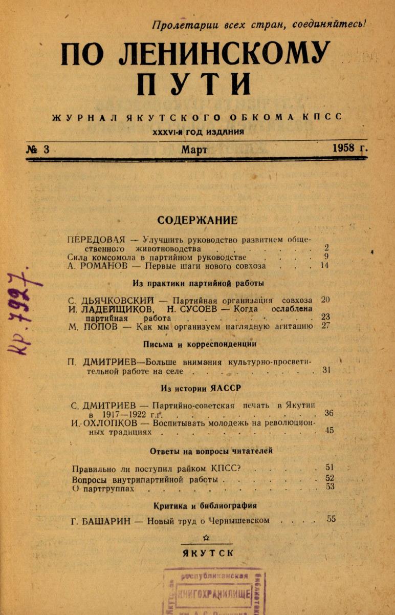 По Ленинскому пути : журнал Обкома ВКП(б). - Якутск, 1922-1964.