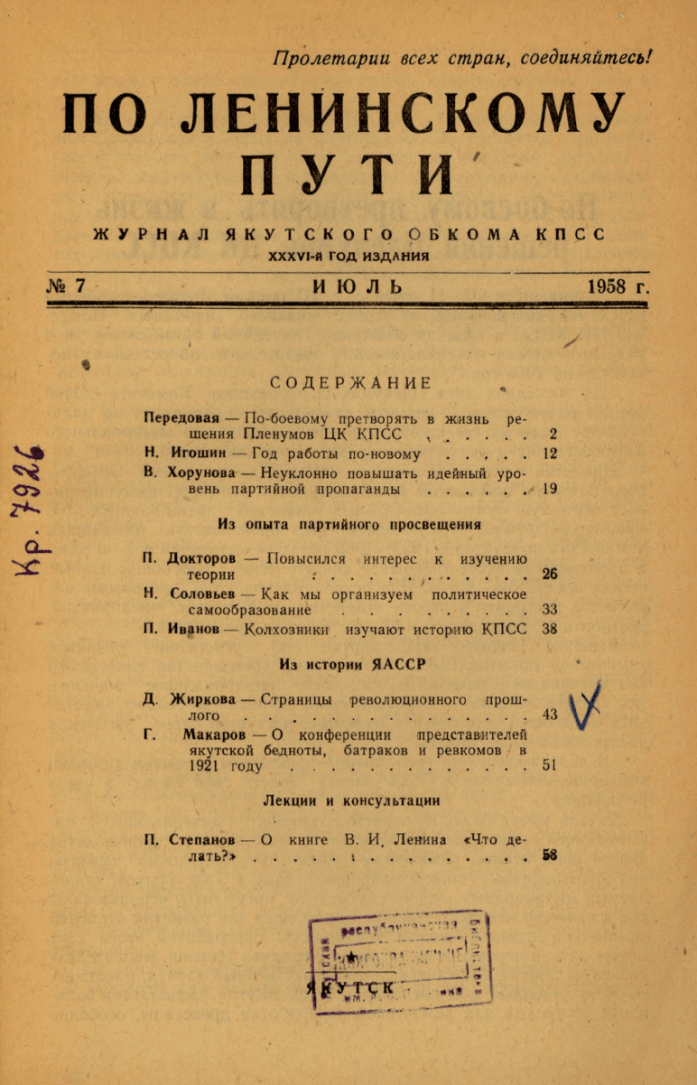 По Ленинскому пути : журнал Обкома ВКП(б). - Якутск, 1922-1964.
