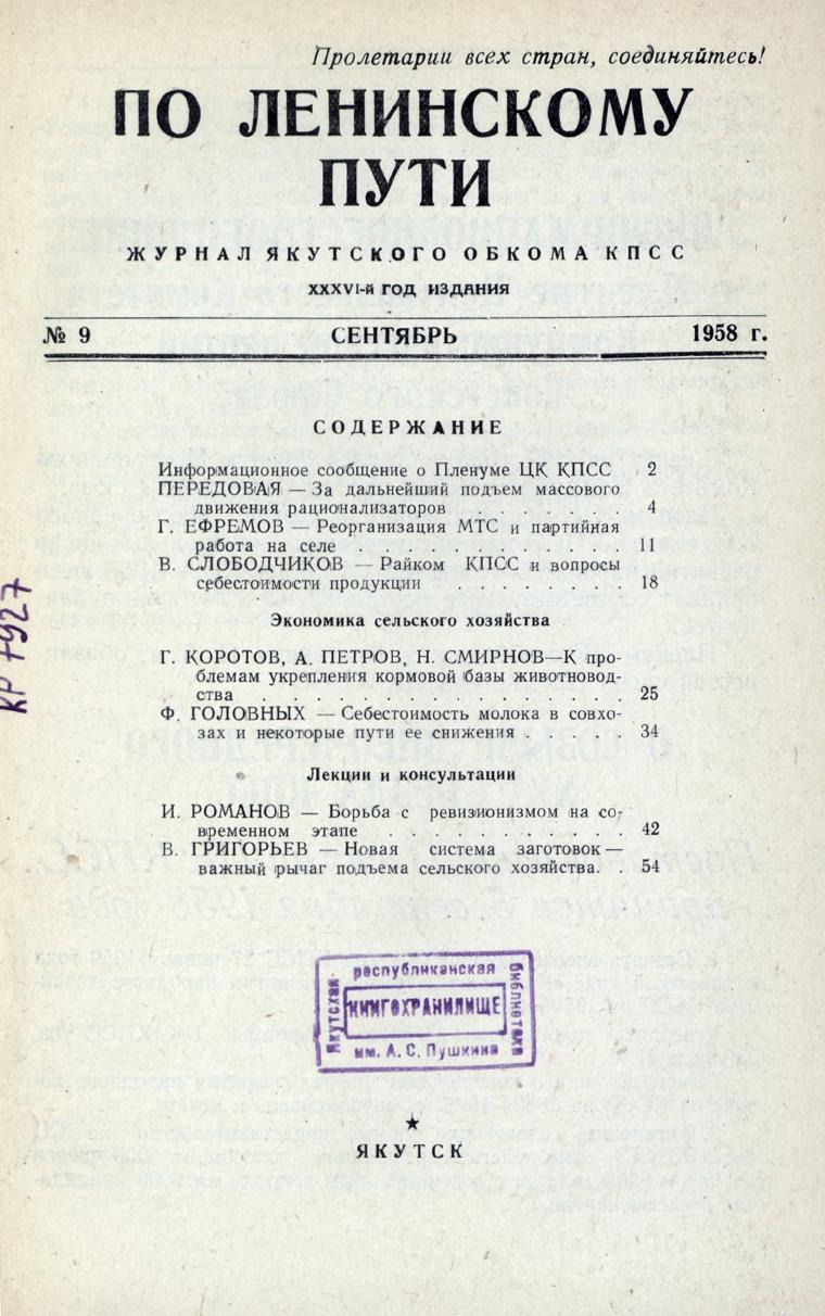 - 9. По Ленинскому пути, 1958, №10 (октябрь)