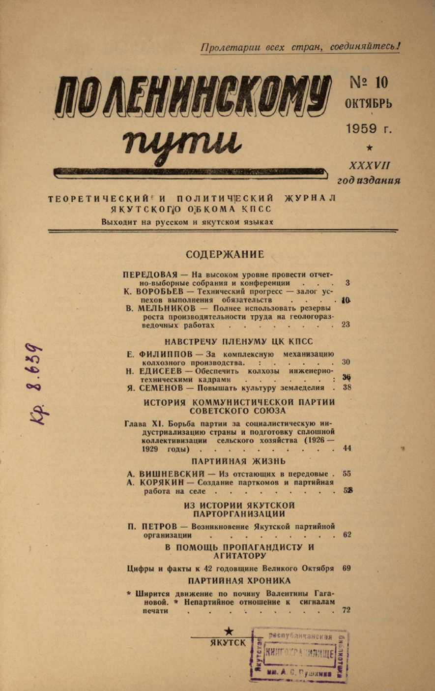 По Ленинскому пути : журнал Обкома ВКП(б) / . - Якутск : , 1922-1964.