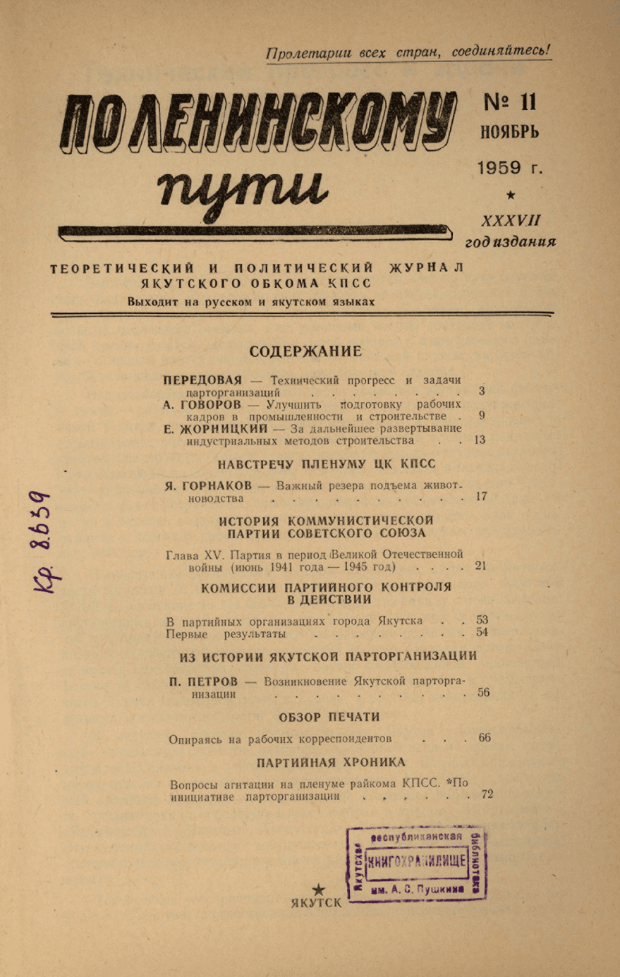 По Ленинскому пути : журнал Обкома ВКП(б) / . - Якутск : , 1922-1964.