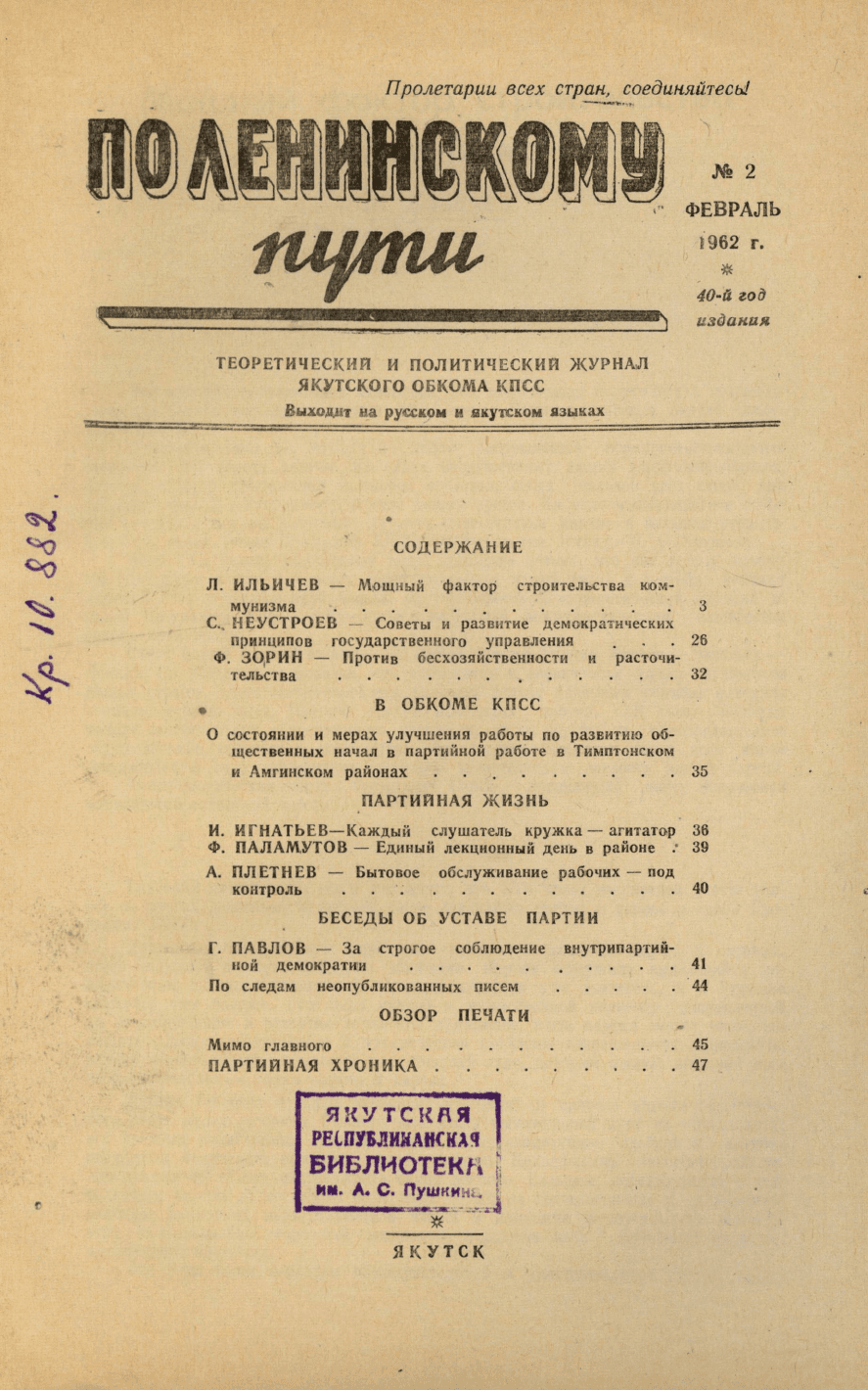 По Ленинскому пути : журнал Обкома ВКП(б) / . - Якутск : , 1922-1964.