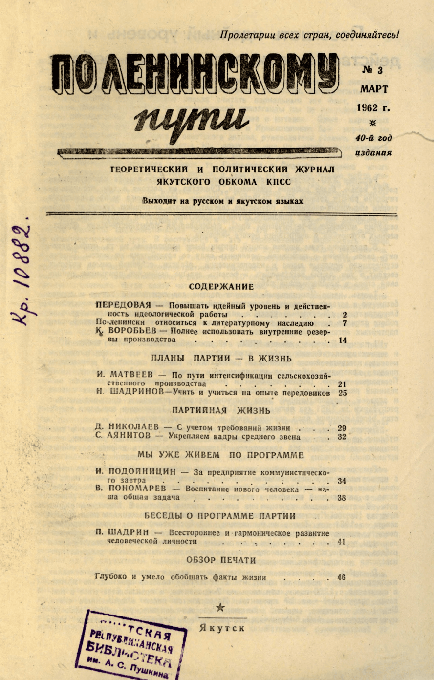 По Ленинскому пути : журнал Обкома ВКП(б) / . - Якутск : , 1922-1964.