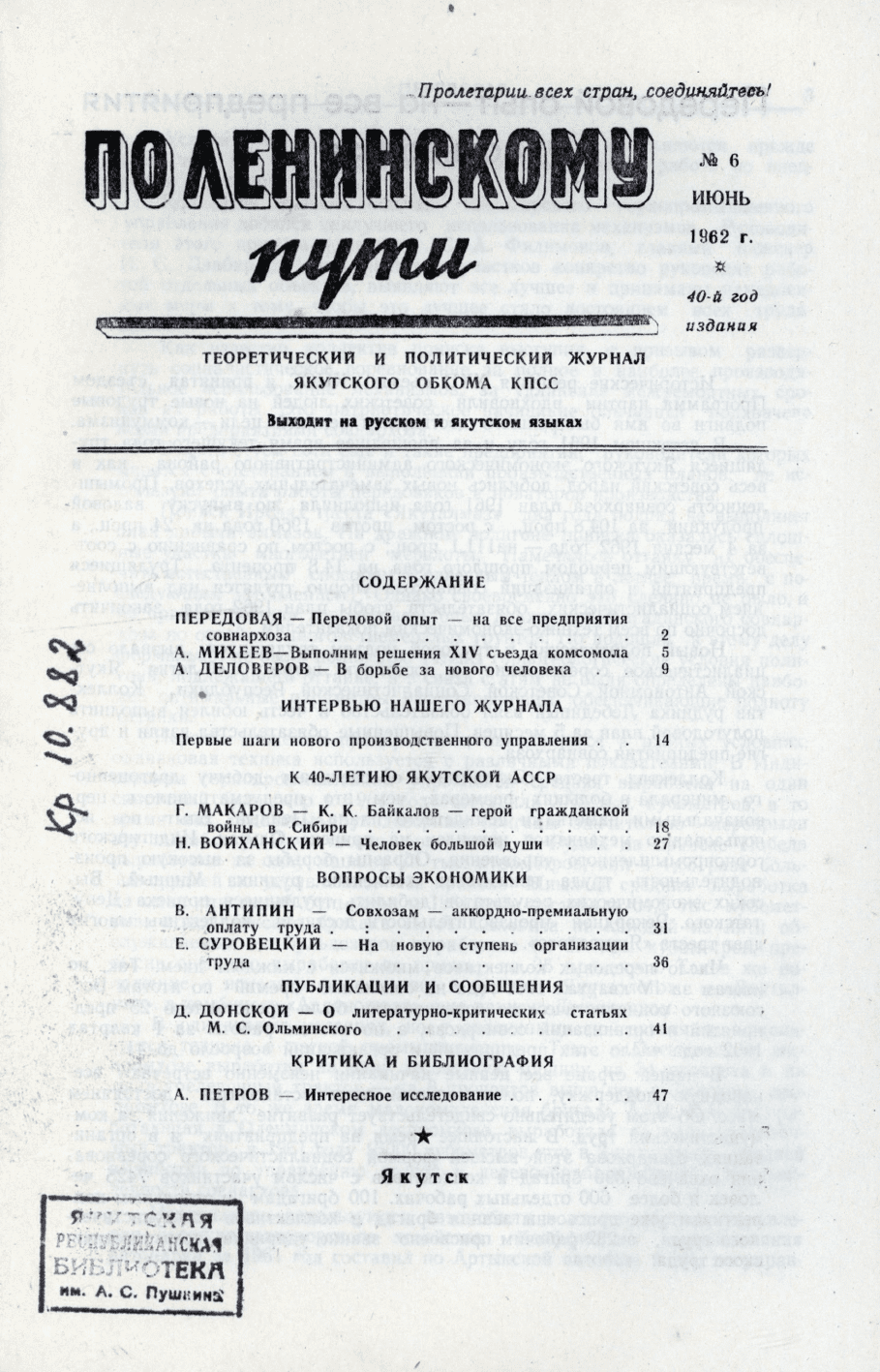 По Ленинскому пути : журнал Обкома ВКП(б) / . - Якутск : , 1922-1964.