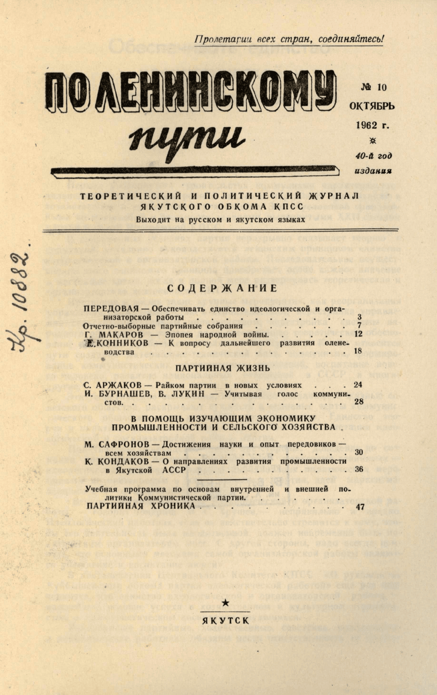 По Ленинскому пути : журнал Обкома ВКП(б) / . - Якутск : , 1922-1964.