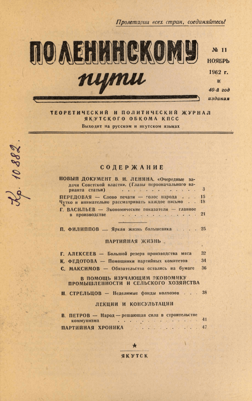 - 10. По Ленинскому пути, 1962, №10 (октябрь)