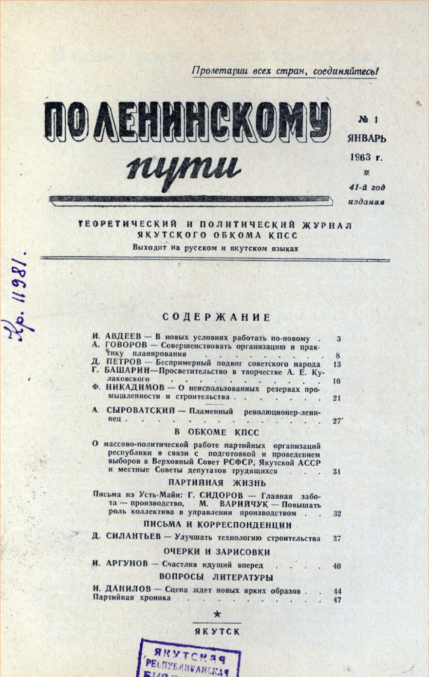 По Ленинскому пути : журнал Обкома ВКП(б) / . - Якутск : , 1922-1964.