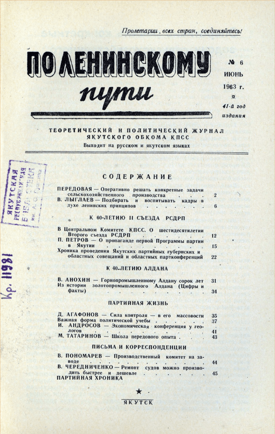 По Ленинскому пути : журнал Обкома ВКП(б) / . - Якутск : , 1922-1964.