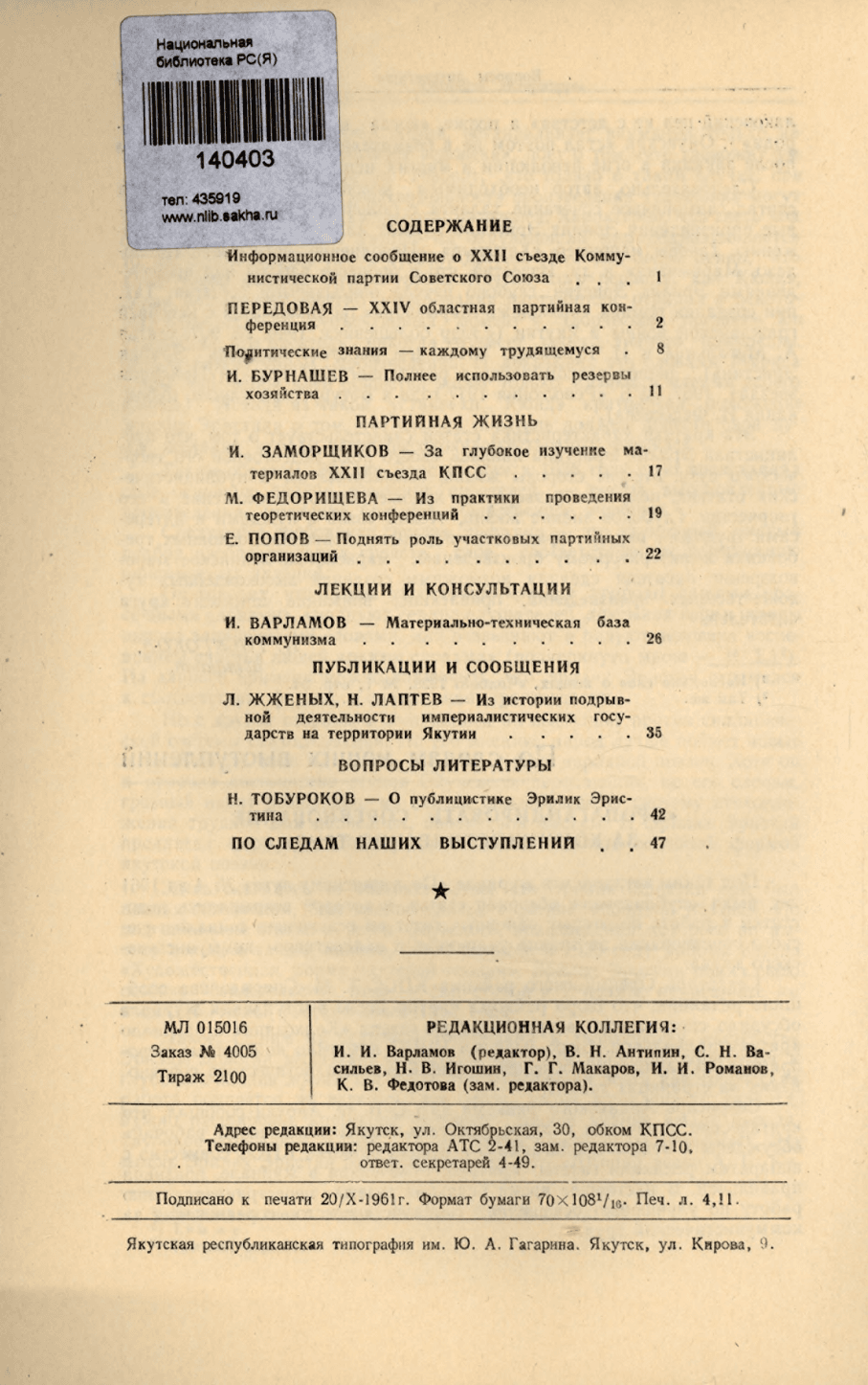 По Ленинскому пути : журнал Обкома ВКП(б) / . - Якутск : , 1922-1964.