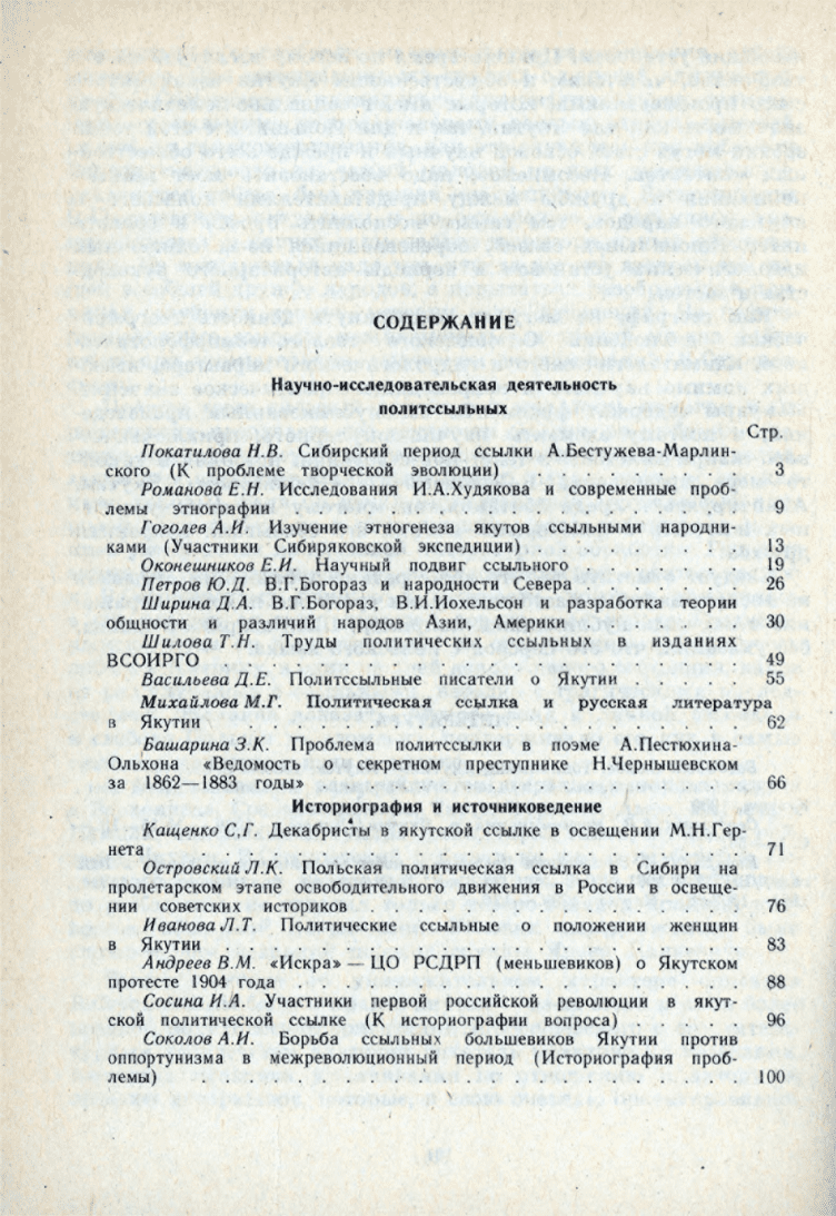 Освещены вопросы историографии и источниковедения истории якутской политической ссылки, численность и состав, условия жизни, общественно-политическая и научно-исследовательская деятельность политических ссыльных