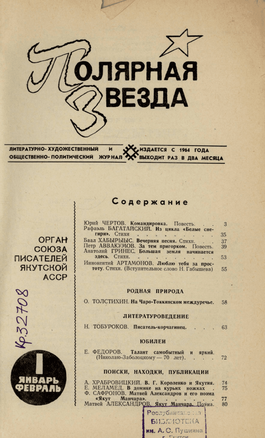 Полярная звезда : литературно-художественный и общественно-политический журнал / . - Якутск : [б. и.], 1956-.