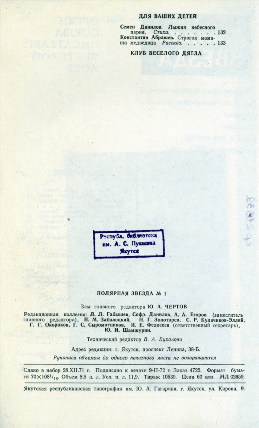 - Периодические издания Якутии (конец XIX – XXI вв.) > Журналы > Полярная звезда > 1972,