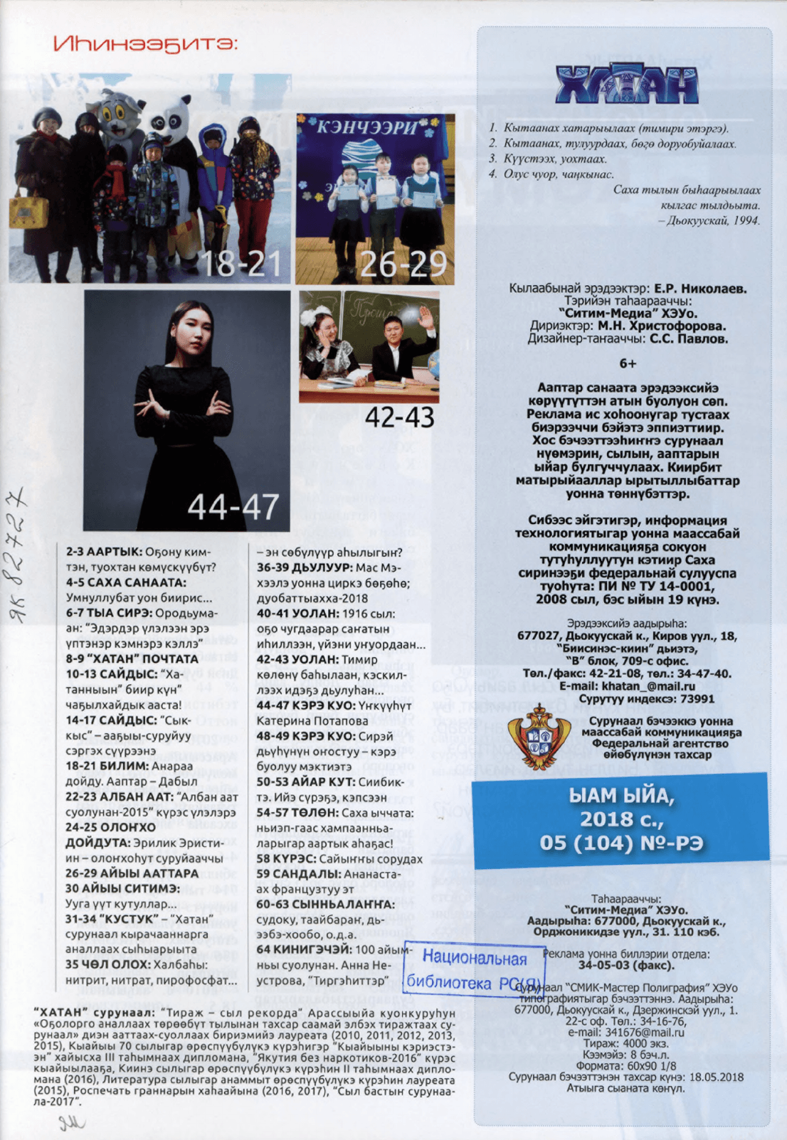 - Периодические издания Якутии для детей > Хатан – журнал для молодежи, школьников и студентов > 2018,