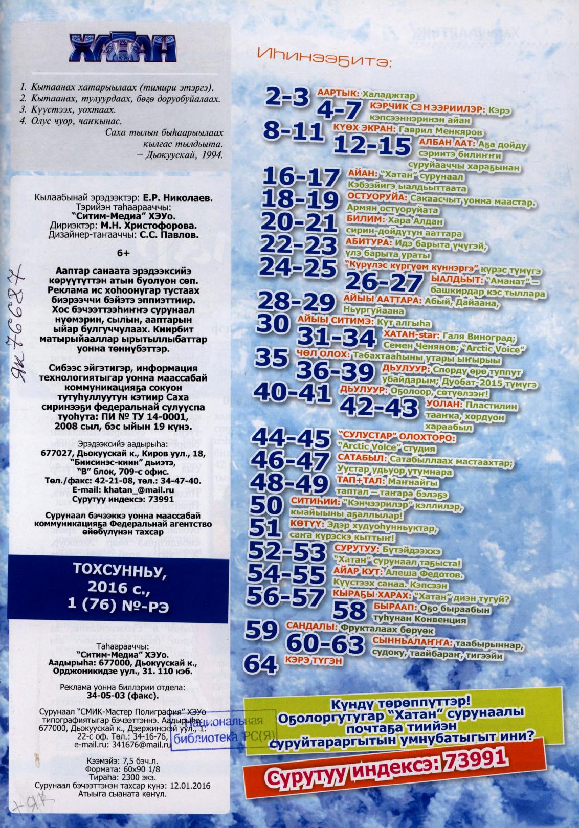 2016, N 1 (76), тохсунньу. - 2016. - 64 с.