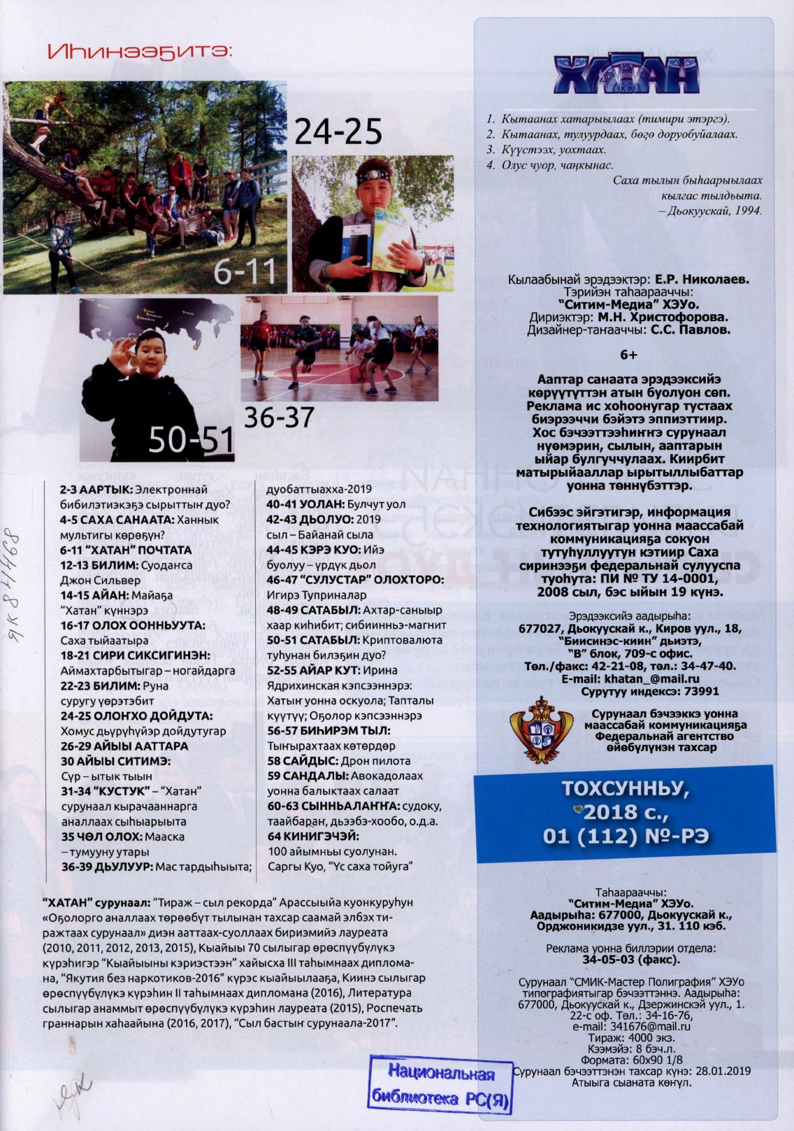 - 19. Хатан: ыччат сайдам сурунаала, 2018, №2 (101) (олунньу)