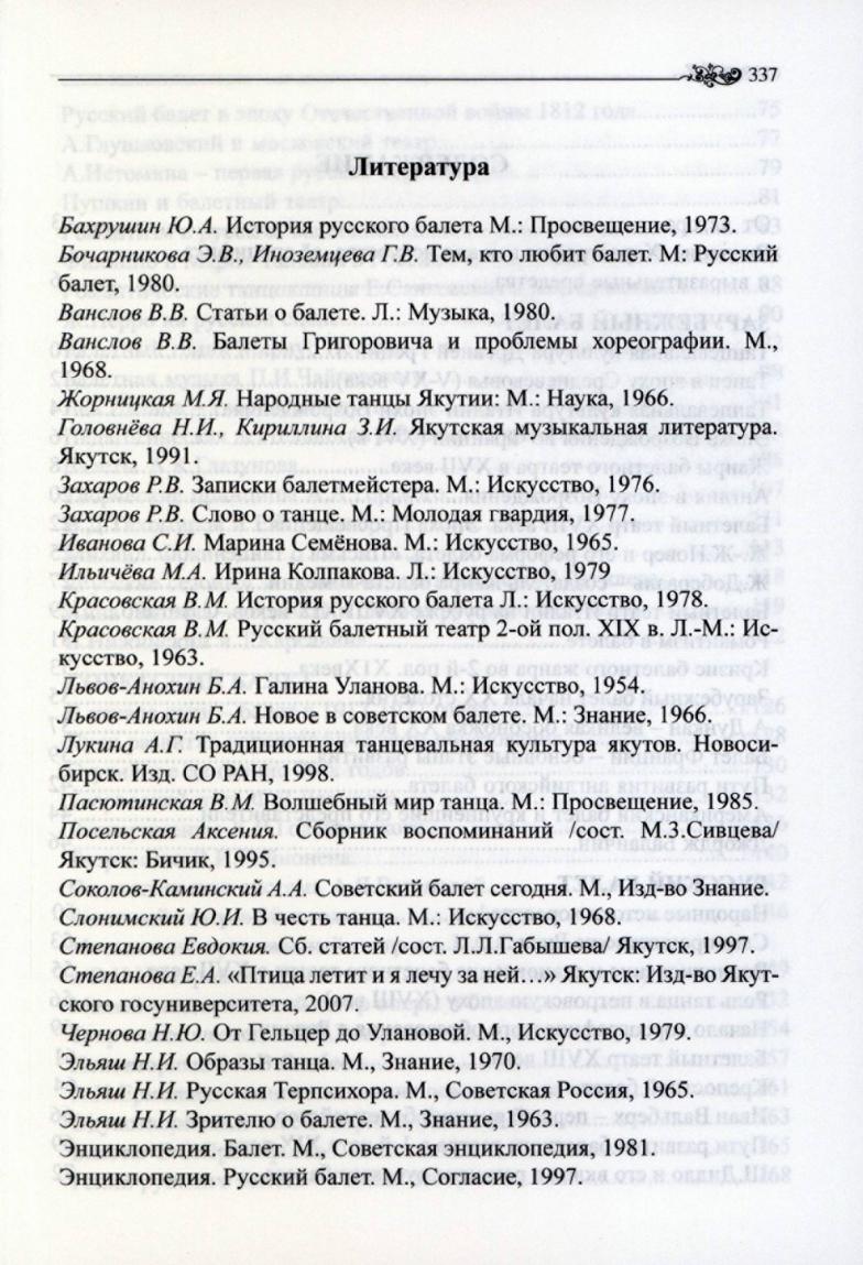 История хореографии : курс лекций / В. А. Захарова ; Министерство культуры и духовного развития Республики Саха (Якутия), ГБУ РС(Я) "Образовательный ресурсный центр". - Якутск : Якутский край, 2014. - с. 337, [1] с.
