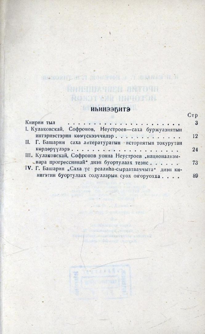 Саха литературатын историятын токурутан көрдөрүүнү утары / Н. Канаев, Г. Ефремов, Г. Тихонов ; ССРС наукаларын акад. Саха сиринээҕи фил., Тыл, лит., история ин-та. - Якутскай : Саха сиринээҕи кинигэ изд-вата, 1955. - 115 с.